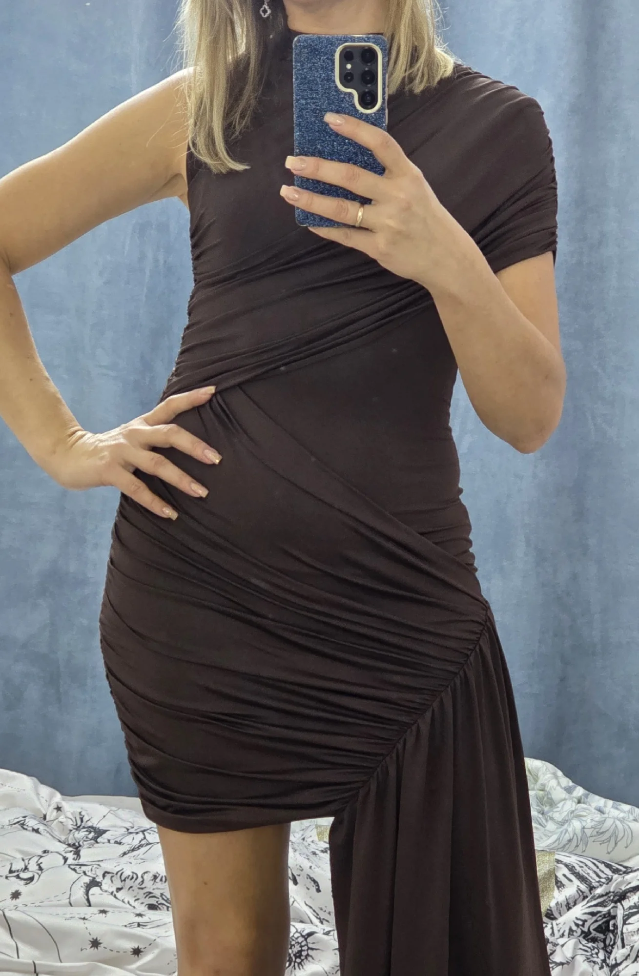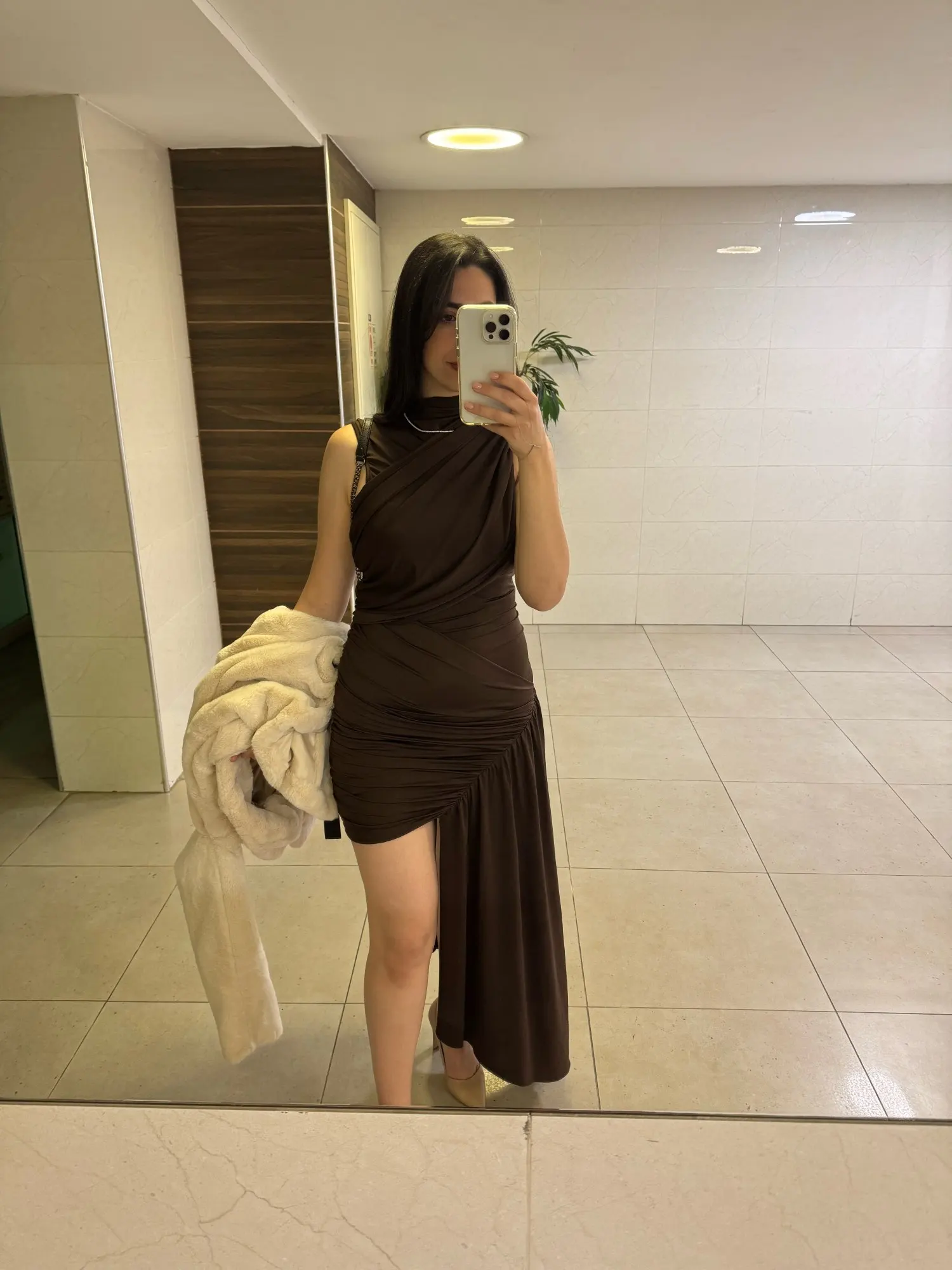 Some dresses whisper elegance. This one commands it. The Drapé Midi features a sleek turtleneck neckline, asymmetric draped fabric, and a high waist silhouette that elongates your figure and moves with you effortlessly. Dressed up or down, this is the piece your wardrobe has been waiting for.